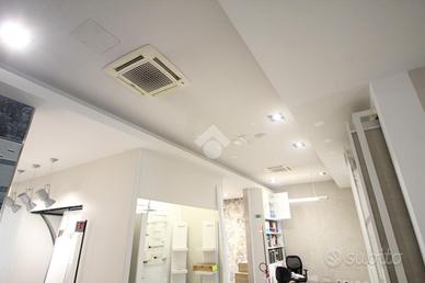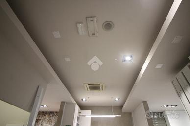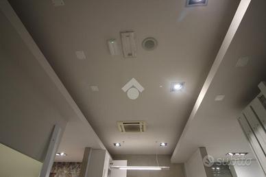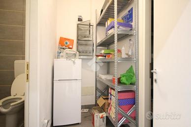Il locale è disposto su pianta rettangolare con due ingressi, l'ingresso posteriore è su area di carico e scarico e parcheggi condominiali.