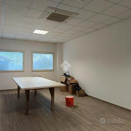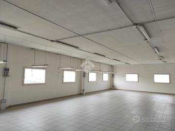 Il capannone al piano terra è formato su pianta rettangolare con due portoni industriali 5x4 mq, zona di lavoro o deposito di 760 dotato di impianto elettrico e di illuminazione industriale con impianto trifasico e pavimento industriale, l'altezza del capannone è di 8,30 metri, al piano terra troviamo circa 100 mq comprensivi di uffici servizi igienici nuovi con bagno , antibagno e spogliatoio con impianto elettrico a norma ed impianto di riscaldamento e raffrescamento.