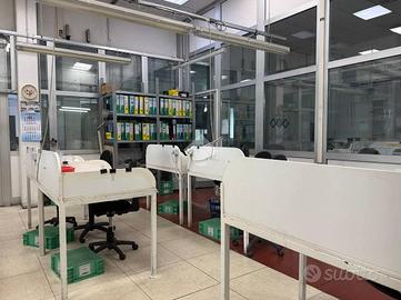 L'area produttiva, di 5.494,5 mq, presenta altezze differenziate: il primo corpo ha un altezza interna di 5,95 mt, mentre i due blocchi successivi raggiungono i 7 mt. Il capannone comprende magazzini, laboratori, spogliatoi, servizi igienici, mensa aziendale e infermeria. Gli ambienti sono realizzati con materiali di qualità e in ottimo stato manutentivo, garantendo elevati standard di sicurezza e funzionalità.