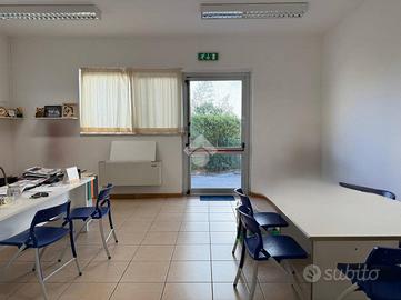 La palazzina uffici, per una superficie complessiva di 763,5 mq, è distribuita su due livelli e comprende ambienti direzionali luminosi, servizi igienici e una scala esterna di collegamento.