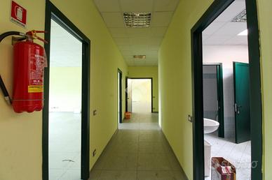 L'immobile dispone di una superficie interna di circa 900 metri quadrati, di cui 200 metri quadrati adibiti ad ufficio, il tutto disposto su un'unica campata. La struttura è raggiungibile tramite un portone di accesso di altezza 5 metri. Lo stabile raggiunge un'altezza di 10 metri e un'altezza di 9 metri di sottotrave. Il capannone dispone di riscaldamento e condizionamento solo negli uffici, impiantistica elettrica e d'illuminazione. Completa la soluzione un sistema anticendio così composto: uscita di emergenza, porta taglia fuoco, antincendio ad idranti e luci di emergenza. All'interno del complesso possiamo trovare ben sei servizi igienici privati a norma disabili, un'area adibita a spogliatoio con annesse docce e uno spazio destinato alla mensa. La proprietà risulta possedere un'area esterna privata di circa 150 metri quadrati completamente recintata.