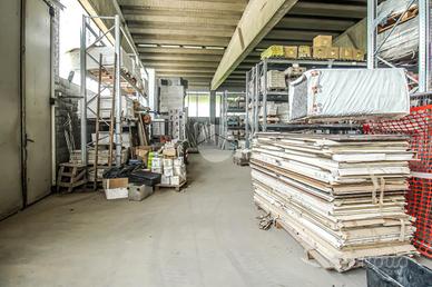 L'ingresso avviene tramite un portone d'accesso di circa 4 metri mentre la struttura raggiunge un'altezza di circa 7,5 metri con un'altezza sotto trave di 5,5 metri. Internamente il capannone si sviluppa lungo un'unica campata, libera da pilastri, con a disposizione più di dieci locali. L'immobile dispone poi di impiantistica elettrica e d'illuminazione; completano la soluzione quattro servizi igienici privati disposti al piano terra. Esternamente lo stabile possiede circa 2.858 metri quadrati di area privata e recintata mediante cancello lungo circa 9 metri con annesso un accesso carraio. La proprietà risulta possedere tetto in eternit.
