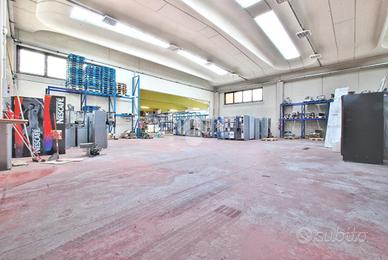 - Capannone 2: sviluppato su una superficie di circa 600 mq, con altezza massima pari a 7,15 m. Dotato di un portellone con ingresso a nord e soppalco.