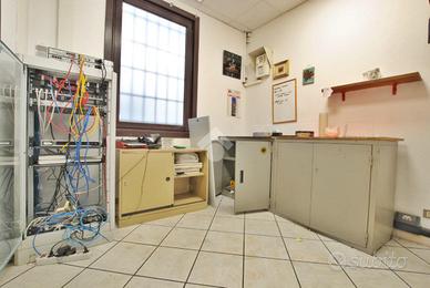 - Officina: sviluppata su una superficie di circa 80 mq, dotata di portellone con ingresso esterno. È fornita di sistema di riscaldamento tramite aerotermo e di impianto di condizionamento.