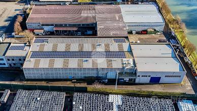 L'ingresso, dotato di portineria, può avvenire mediante ben otto portoni di altezza 4,46 metri circa di cui sei adibiti a uscite d'emergenza. Il capannone dispone di riscaldamento autonomo, d'impiantistica elettrica (2 fotovoltaici, ciascuno di potenza 72 kw), d'illuminazione e di videosorveglianza. La soluzione presenta poi un sistema antincendio composto da impiantistica d'allarme, antincendio a idranti, luci e uscita d'emergenza; completa lo stabile un carroponte di portata massima 10T. Esternamente la proprietà gode di ben 2.525 metri quadrati di area privata e recintata mediante un cancello di 6,8 metri, completo di un passo carraio e un accesso carraio.