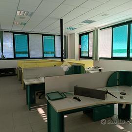 Al piano primo troviamo due ampie sale open space e 4 uffici di rappresentanza e servizi wc con antibagno nuovi e fenestrati.