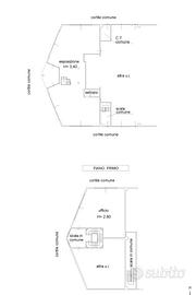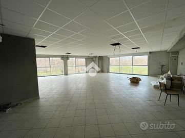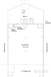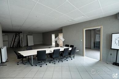 La soluzione si divide in parte produttiva ed espositiva oltre ai locali uso ufficio. Il magazzino retrostante ha una metratura di 694mq open space con un altezza di 7.70mt e accesso carraio. L'area produttiva è completa di gru a parete e c'è la predisposizione per il carroponte. La parte frontale, collegata internamente col magazzino si sviluppa al piano terra come un area espositiva con vetrate che la rendono particolarmente luminoso e una metratura di 322mq per un altezza di 3.40. E' collegato da scala interna con il piano superiore di 316mq composto da locali uso ufficio. Completano il fabbricato i servizi igienici. La soluzione è dotata di tutta l'impiantistica e esternamente è presente un area privata recintata di circa 3000mq.