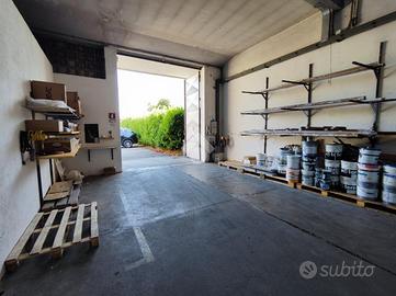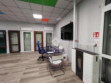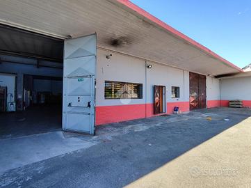 Internamente, l'immobile presenta un'area adibita a deposito di circa 450mq, oltre a due uffici e una zona showroom di quasi 100 mq in totale, con accessi indipendenti, tutto al piano terra.