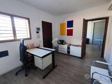 Internamente, l'immobile presenta un'area adibita a deposito di circa 450mq, oltre a due uffici e una zona showroom di quasi 100 mq in totale, con accessi indipendenti, tutto al piano terra.