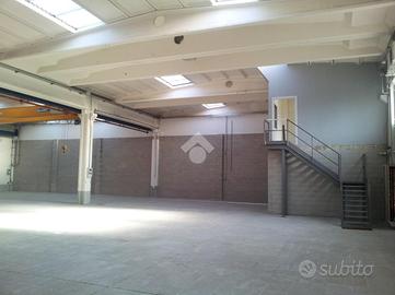 L'immobile è composta da 600 mq circa di magazzino, altezza 7 m con carroponte, e 240 mq di uffici, su due piani.