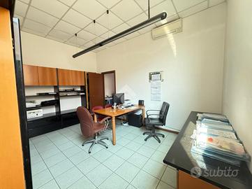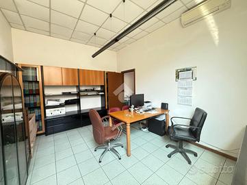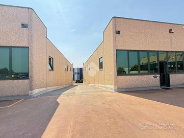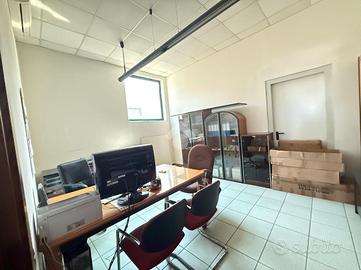 Gli uffici, aventi accesso pedonale indipendente sia dall'esterno che dall'interno del capannone, sono dotati di impianto elettrico, illuminazione, riscaldamento, aria condizionata, rete dati e doppi servizi igienici