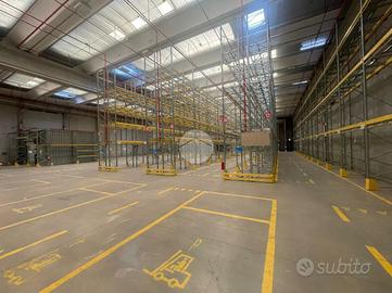 c.a. 5750mq h. 10,50mt sotto trave compartimentati REI 120 in doppia campata ed accessibili tramite ingresso pedonale, doppio ingresso con portoni e 4 bocche di carico. Annessi al capannone locali ad uso bagni e spogliatoi.