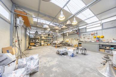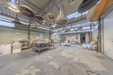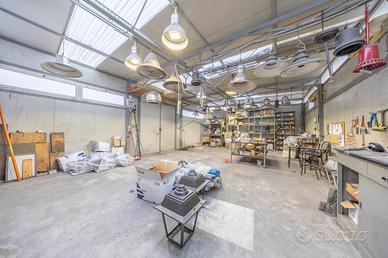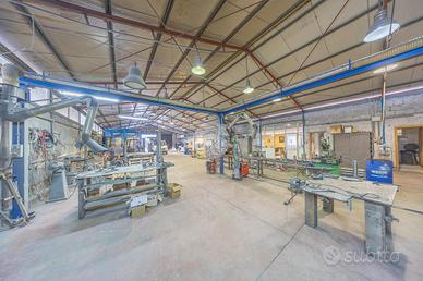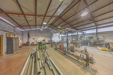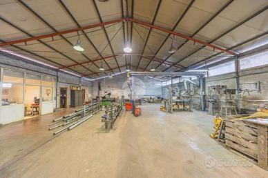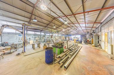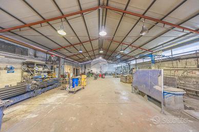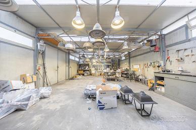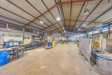 La zona di lavoro si estende su 400 mq, con un'altezza che varia dai 3,90 m ai 5,70 m, offrendo ampio spazio per la movimentazione di macchinari. Adiacente a questa, una tettoia esterna fornisce ulteriore spazio aggiuntivo. Inoltre, la zona di lavoro è dotata di uno spogliatoio per i dipendenti, con altri due bagni.