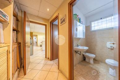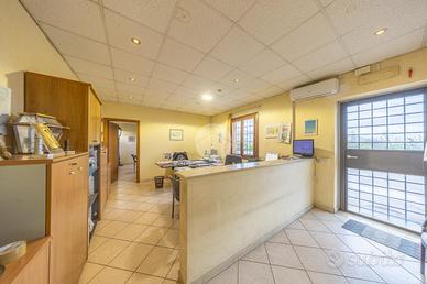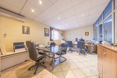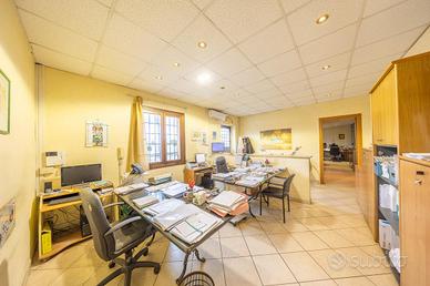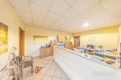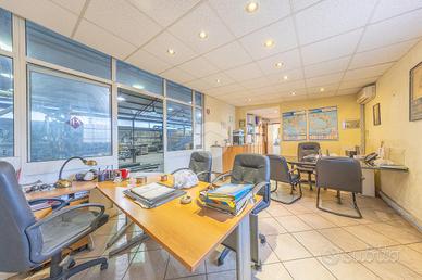 L'immobile dispone di 2300 mq di spazio esterno privato, perfetto per manovre o deposito materiali. All'ingresso, troviamo una zona uffici separata, composta da due postazioni per attività amministrative che può essere usata come zona reception, seguita da un ufficio privato, ideale per la gestione delle pratiche aziendali. Un'altra area uffici, con due postazioni, è perfetta per un team di lavoro. Completano questa zona due bagni per il personale e un ripostiglio.