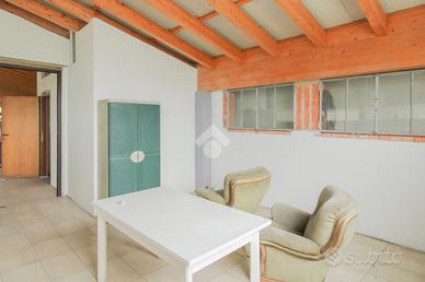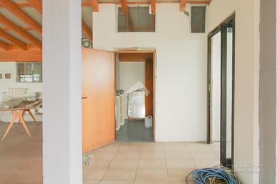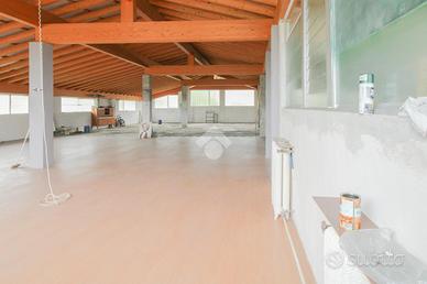 Il capannone proposto in locazione ha una superficie utile di circa 420 metri quadrati, posizionato al piano primo di un edificio strutturato su due livelli. Internamente, la struttura ha un'altezza massima sfruttabile di circa 3 metri, con pilastri che suddividono l'ambiente in quattro campate. Inoltre, è dotato di un blocco uffici. L'immobile è dotato di un accesso carraio di circa 6 metri. A completare la soluzione è la presenza di un servizio igienico privato.