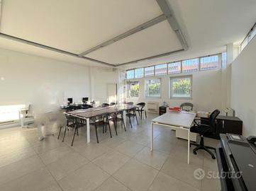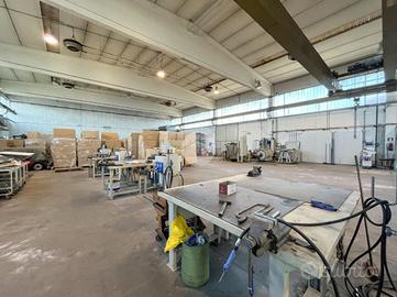 i restanti 130 mq sono suddivisi tra un locale ufficio totalmente open space posto all'ingresso sul fronte del capannone con vano scale per accedere al primo piano e zona spogliatoi con 3 servizi igienici e docce.