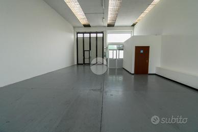 La metratura complessiva dell'immobile è di circa 200 metri quadrati, di cui 10 metri quadrati adibiti a spazio direzionale, il tutto disposto interamente al piano terra di un edificio di un piano. L'accesso avviene tramite un portone di altezza 5 metri mentre internamente la struttura raggiunge un'altezza di circa 5,8 metri, libera da pilastri, distribuita lungo un'unica campata. Il capannone dispone d'impiantistica elettrica e d'illuminazione, nonché di un'uscita d'emergenza; completa la soluzione un servizio igienico privato. Esternamente la proprietà possiede circa 50 metri quadrati di area cortilizia privata con annesso cancello di circa 7 metri, completo di un passo carraio e ben due accessi carrai.