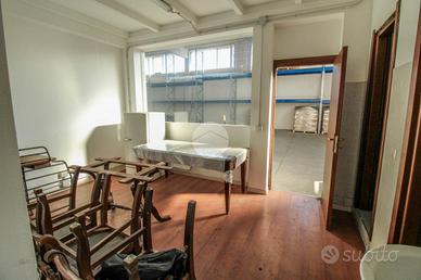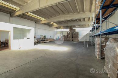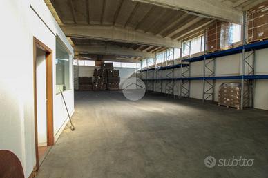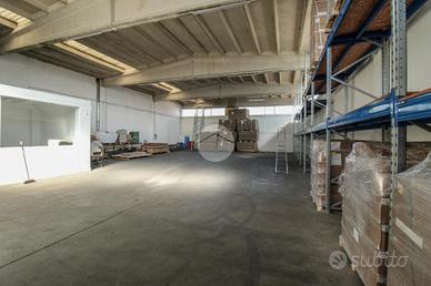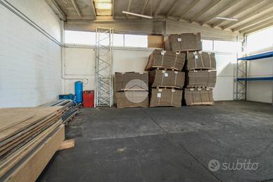 La soluzione proposta in affitto dispone di una superficie calpestabile di circa 400 metri quadrati, di cui 40 metri quadrati adibiti a spazio direzionale, il tutto disposto lungo un'unica campata al pian terreno di un edificio di un piano. Il capannone raggiunge un'altezza di 6,57 metri con un'altezza sotto trave di 5,1 metri, dispone di un sistema antincendio composto da porta tagliafuoco e uscita d'emergenza. La struttura è raggiungibile tramite portone d'accesso di circa 4,36 metri che affaccia su tre locali, liberi da pilastri. Lo stabile è servito dagli impianti elettrici e d'illuminazione, gode inoltre di un servizio igienico privato completo di comode docce. Esternamente troviamo ulteriori 600 metri quadrati di area recintata, libera su tre lati e accessibile tramite un cancello di circa 7 metri con annessi un passo carraio e un accesso carraio. La proprietà risulta possedere tetto in eternit.