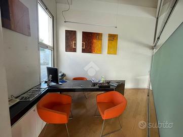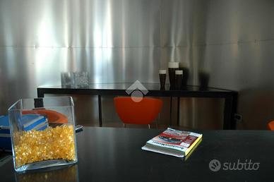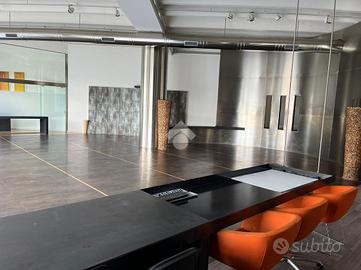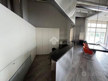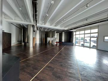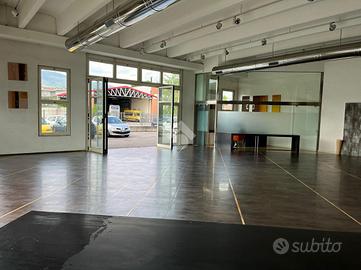 Capannone d'immagine con piccola zona commerciale con vetrine, pavimentazione in gress e strutturato in openspace con altezza di 4,5 metri, servizio igienico e zona ufficio per un totale di 300 mq.