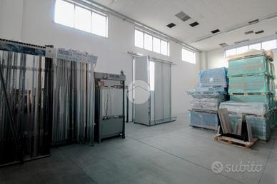 Il capannone misura 750 metri quadrati, di cui circa 300 metri quadrati adibiti ad uffici e disposti su due livelli. La soluzione si sviluppa lungo un'unica campata, ha un'altezza di 7,20 metri, ed è accessibile tramite due portoni alti 4,00 metri. Il fabbricato è munito dell'impianto elettrico e di illuminazione. Inoltre, è servito dal sistema di riscaldamento, condizionamento e dall'impianto antincendio a manichette. Presente un servizio igienico a norma di disabili. La proprietà è interamente recintata e possiede ulteriori 50 metri quadrati adibiti ad uso commerciale.