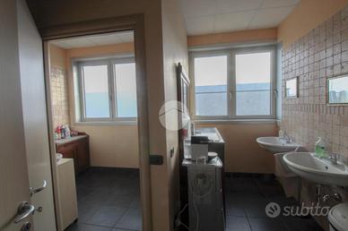 Il capannone proposto in vendita ha una superficie di circa 750 metri quadrati e possiede ulteriori 300 metri quadri di uffici disposti su due livelli.