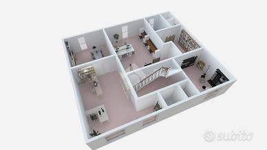 - Il primo piano è ad uso ufficio suddiviso in quattro ampie stanze luminose, oltre a spogliatoio e bagni finestrati