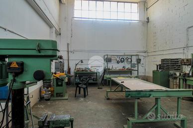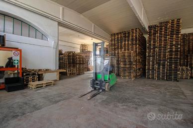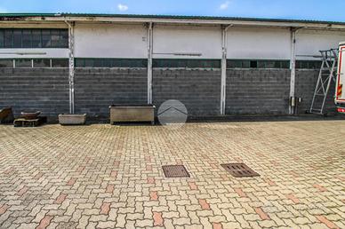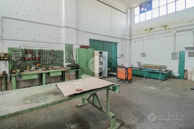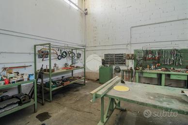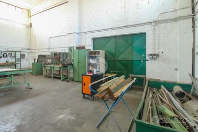 L'ingresso avviene tramite un portone d'accesso di circa 4,2 metri mentre la struttura, libera da pilastri, raggiunge un'altezza di 7 metri con un'altezza sotto trave di circa 5,3 metri. Il complesso gode d'impiantistica elettrica e d'illuminazione; completa la soluzione un sistema antincendio composto da porta tagliafuoco e uscita d'emergenza. Esternamente sono presenti circa 600 metri quadrati di area privata e recintata con annessi un passo carraio e un ulteriore accesso carraio. La proprietà risulta possedere tetto in eternit.
