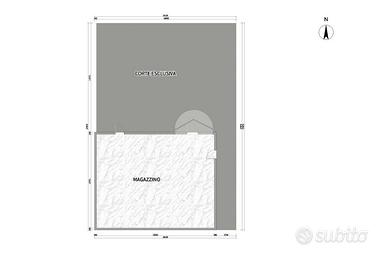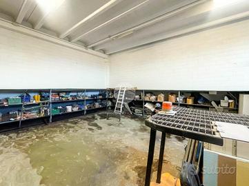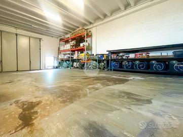 Il magazzino al piano terra ha una superficie complessiva di circa 200 mq che costituiscono un unico ambiente a cui si accede tramite accesso carraio. All'interno del capannone è presente un soppalco attualmente adibito a zona uffici di circa 20 mq.