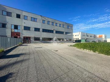 È presente un ampio scoperto privato recintato per parcheggio, spazi di manovra e carico/scarico per circa 1500 mq su 3 lati.
