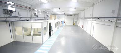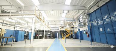 Il piano terra ha una metratura di 1000 mq così suddivisi: 850 mq di area produttiva con altezza di 7 metri, 65 mq tra servizi interni m/f di cui uno con doccia, spogliatoi e 85 mq di zona uffici.