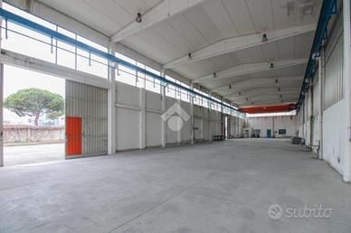 La soluzione proposta in vendita ha una superficie complessiva di circa 2.550 metri quadrati, di cui un'area destinata ad ufficio pari a 50 metri quadrati e un'area destinata a magazzino di 2.550 metri quadrati. Il capannone, provvisto di tre campate, ha un'altezza massima sfruttabile di 8,5 metri ed è possibile accedervi tramite un cancello avente larghezza di 10 metri. Internamente, l'immobile si presenta suddiviso in tre ampi spazi, caratterizzati da 4 carriponte con portata di 10 tonnellate. Il capannone è provvisto esclusivamente dell'impianto elettrico e d'illuminazione. A completare la soluzione è la presenza di tre servizi igienici privati a norma disabili con spogliatoi e docce e un'area esterna di 5.000 metri quadrati.