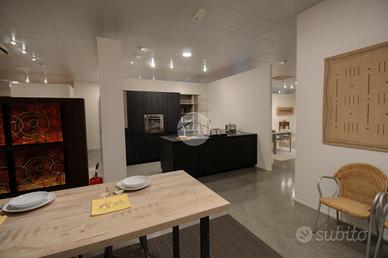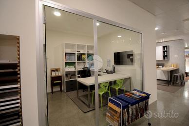 Il capannone commerciale misura 480 metri quadrati, di cui circa 100 metri quadrati adibiti a zona commerciale e 380 metri quadrati adibiti a magazzino espositivo. La soluzione si sviluppa lungo un'unica campata, ha un'altezza di 3,00 metri, ed è accessibile tramite tre portoni alti circa 3 metri. Il fabbricato è munito dell'impianto elettrico e di illuminazione, riscaldamento e condizionamento. Inoltre, è servito del carroponte e dal sistema di allarme. Presente un servizio igienico con annesso antibagno. La proprietà è interamente controsoffittata.