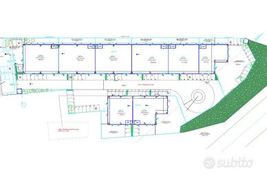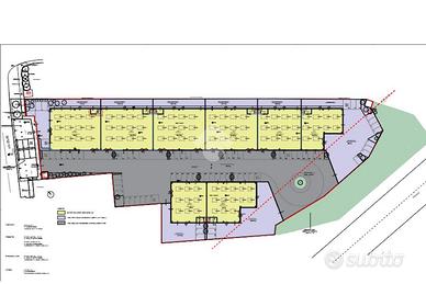 Completa la proprietà un ampia area esterna comoda per la movimentazione dei mezzi pesanti e ideale per il parcheggio dei mezzi privati in quanto dotata di 76 posti auto.