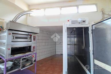La zona laboratorio, posta sul retro, misura circa 200 metri quadrati ed è dotata di area esterna privata di circa 100 metri quadrati. L'altezza interna è di circa 3,50 metri e l'accesso avviene tramite un portone alto circa 3 metri. All'interno sono due servizi igienici con spogliatoi e una canna fumaria, rendendo lo spazio adatto a diverse attività produttive o artigianali.