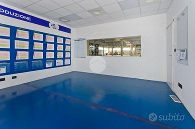 Capannone costruito agli inizi degli anni 2000 con struttura prefabbricata ad unico piano di calpestio fuori terra, dedicato a produzione, uffici e zona a servizi del personale. Impianti tecnici, centrale termica, cabina enel, locale cisterna di accumulo per Sprinkler. Zona di ingresso con guardiania, uffici, zone indipendenti adibite a vari settori tipo qualità e laboratori, varie zone wc., spogliatoi, mensa e posti auto esterni. Riscaldamento a gas metano a servizio di tutto l'insediamento.