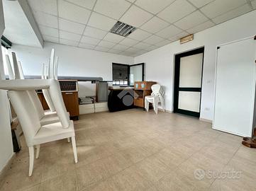 In quest'ultima porzione l'accesso al vano scale avviene dall'interno, dal quale si raggiunge la seconda parte di uffici al primo piano di 320 mq con un'altezza di 3,57 m anch'esso dotato di servizi.