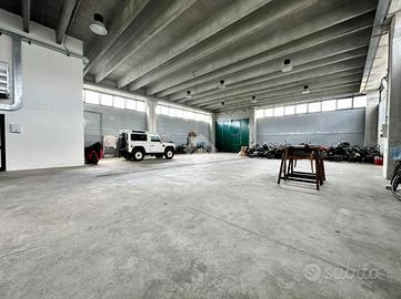 Il piano terra è diviso in due ambienti separati tra loro anche, il più grande di 577 mq ed alto 5,50 m è dotato di portellone industriale alto 5 m e largo 4 m per permettere l'ingresso a bilici e mezzi pesanti.