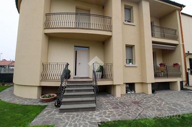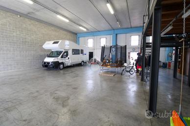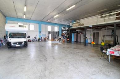La soluzione proposta in vendita dispone di una superficie coperta complessiva di circa 550 metri quadrati suddivisi in 300 mq di capannone industriale (di cui 150 mq attualmente affittati e venduti a reddito), 30 metri quadrati di uffici e 220 metri quadrati di abitazione. La proprietà si presenta recintata e dotata in tutto di due accessi carrai che si aprono sull'area esterna privata di 150 metri quadrati circa. Allo spazio interno del capannone si accede tramite un portone di 4 metri che consente l'ingresso a mezzi di medio/grandi dimensioni, alcuni dei quali riescono tranquillamente a muoversi anche al coperto per la completa assenza di pilastri portanti; l'ambiente raggiunge un'altezza massima di 6 metri (5.5 metri sotto trave). L'immobile è completo degli impianti elettrico (220 kw), di illuminazione e dei sensori di movimento per il sistema di allarme; l'impianto di condizionamento caldo/freddo dell'aria sono invece presenti unicamente negli uffici. L'abitazione è posizionata sulla parte frontale del complesso e si sviluppa su due piani; gli uffici si trovano invece in una struttura indipendente dotata di un ulteriore servizio igienico privato oltre a quello del capannone.