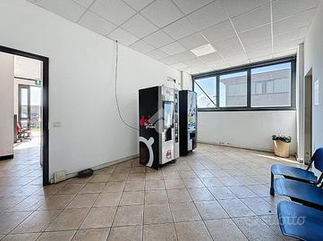 La parte fronte strada è destinata a uffici direzionali e comprende sala d'attesa, due uffici, servizi igienici, spogliatoi e mensa, distribuiti su circa 200 mq.