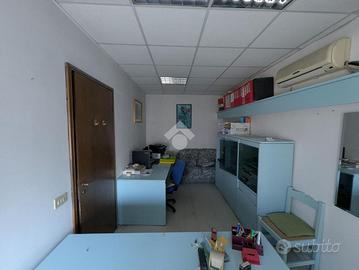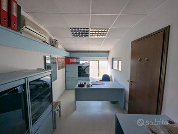 Gli spazi interni sono ben organizzati e comprendono un ufficio, due servizi igienici e una stanza separata adibita a cucina o area ristoro per il personale.