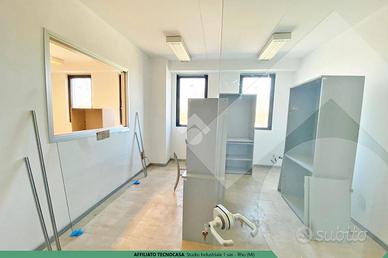 La zona UFFICI di rappresentanza che si sviluppa su due livelli suddiviso in pareti mobili con zone open space. Piano terra 500 mq e primo piano 600 mq. Pavimenti flottanti. Serramenti in alluminio e pareti vetrate.