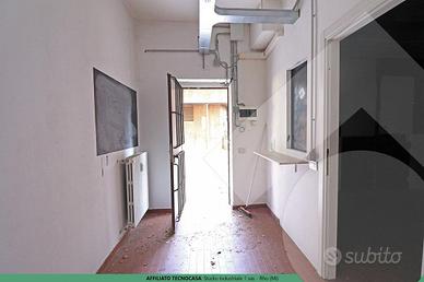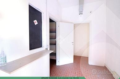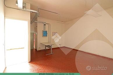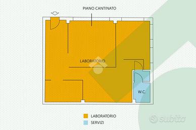 Il LABORATORIO di 95 mq si trova al piano seminterrato e si divide in tre locali più servizio igienico. Finestre in ferro con inferriate. Porte interne in legno. Pavimento in gres porcellanato.