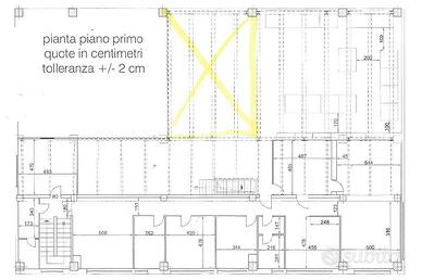 -Piano Primo: 390 mq, di cui 190 mq destinati a uffici con servizi e impianto di riscaldamento e raffrescamento, oltre a 200 mq di soppalco.