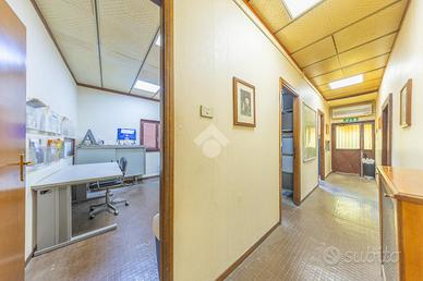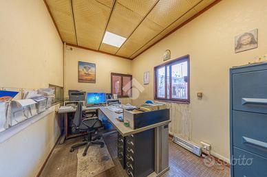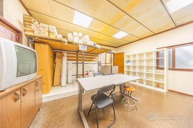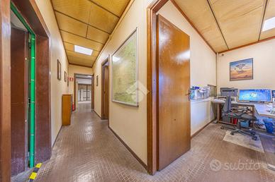 L'immobile si sviluppa su una superficie interna di circa 550 mq, con un'area uffici composta da quattro stanze, due bagni, due ampie aree operative, un soppalco e cinque accessi indipendenti. Il tutto è inserito su un lotto di circa 1.300 mq complessivi, completamente recintato e dotato di corte perimetrale privata, ideale per la movimentazione mezzi e a servizio di eventuali nuovi sviluppi edilizi.