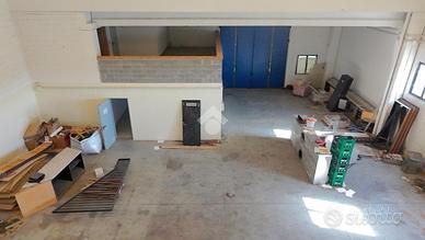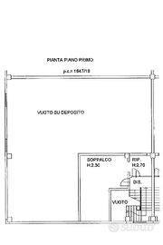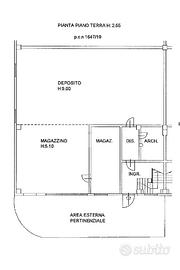 - il piano terra con accesso carraio ha una prima area ad uso deposito di 6,10 mt di altezza che si apre in una seconda ed ampia zona magazzino con altezze pari a 9 mt. Sempre al piano terra troviamo una stanza ad uso ufficio e un locale bagno cieco.