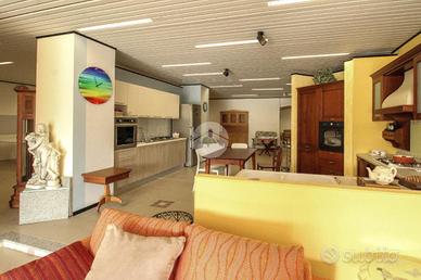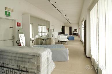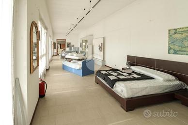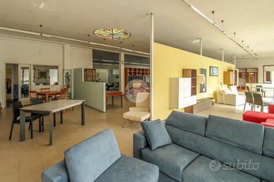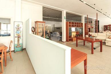 - Al piano terra troviamo circa 940 metri quadrati di capannone commerciale, avente pilastri e completo di un servizio igienico privato, il quale raggiunge un'altezza di circa 3,5 metri con un'altezza sotto trave di 3,5 metri;