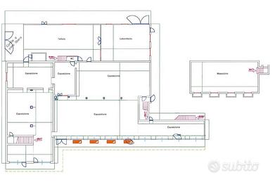 - Infine al piano primo, raggiungibile mediante comode scale, vi sono circa 100 metri quadrati adibiti ad appartamento con annesso un servizio igienico privato, nel quale è presente in maniera esclusiva l'impianto di riscaldamento;
