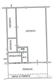 Il capannone proposto in locazione possiede una superficie interna di circa 200 metri quadrati con annessa area esterna di circa 40 metri quadrati.