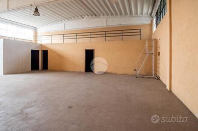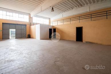 L'immobile in affitto dispone di una metratura complessiva di circa 200 metri quadrati, di cui 16 metri quadrati circa adibiti a spazio direzionale, il tutto posto interamente al piano terra con annesso un servizio igienico privato, completo di docce e un'area spogliatoio. L'ingresso avviene tramite un portone di altezza 2,80 metri mentre internamente la struttura raggiunge un'altezza di circa 6,5 metri con un'altezza sottotrave di circa 5 metri, libera da pilastri, distribuita lungo un'unica campata. Il capannone dispone d'impiantistica elettrica e d'illuminazione; completa la soluzione un'uscita d'emergenza. Esternamente la proprietà possiede circa 40 metri quadrati di area cortilizia privata e recintata mediante un cancello di circa 5 metri, completo di un accesso carraio e un passo carraio.