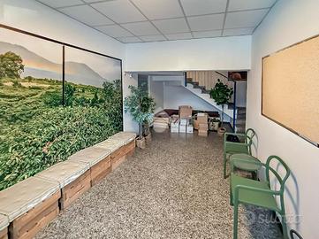 * Al piano terra, troviamo un ampio spazio di circa 1.800 metri quadrati, destinato ad area produttiva e magazzino, disposto su tre campate separate da pilastri, possiede un'altezza interna di 7,5 metri (6,5 metri sotto trave). Troviamo inoltre 400 metri quadrati di spazi destinati ad uffici. L'area produttiva è dotata di un impianto di riscaldamento tramite robur, mentre gli uffici sono equipaggiati con impianti di riscaldamento e raffrescamento tramite split. Sullo stesso piano, sono presenti 10 servizi igienici privati, completi di spogliatoi, e un'area dedicata alla mensa aziendale.